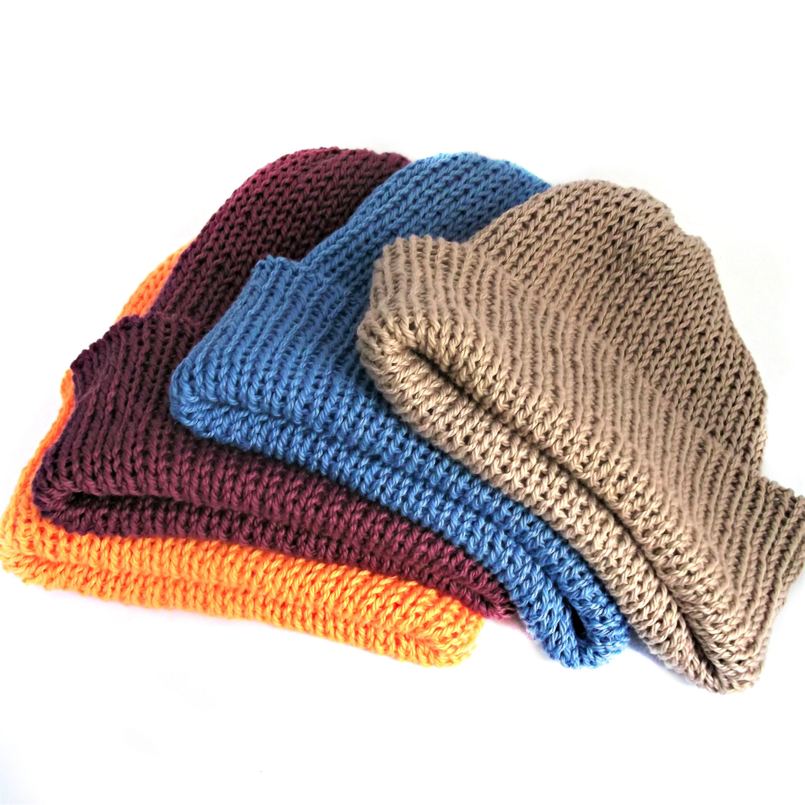 This yarn is so soft, you will not believe it’s 100% cotton. It knits really well with a slight loose-knit, making these beanies perfect for all year round wear.