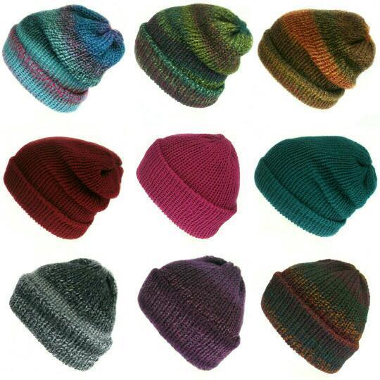 The wool is marbled and the colours are distributed randomly throughout, making each hat unique.