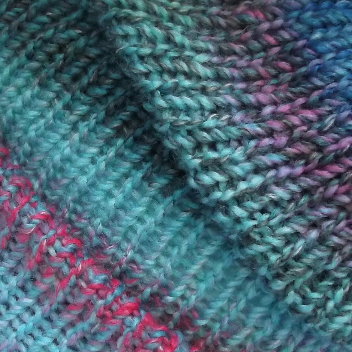 The Azura blue slouchy beanie hat. Hand-woven on a mechanical loom with chunky wool. The colours are spread randomly throughout, making each hat very unique.