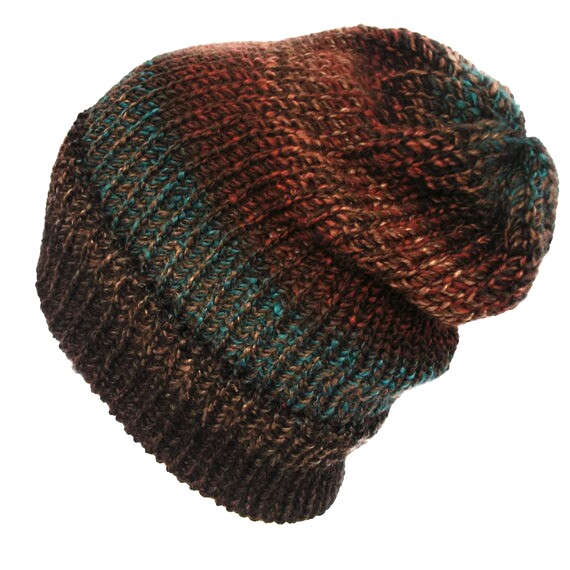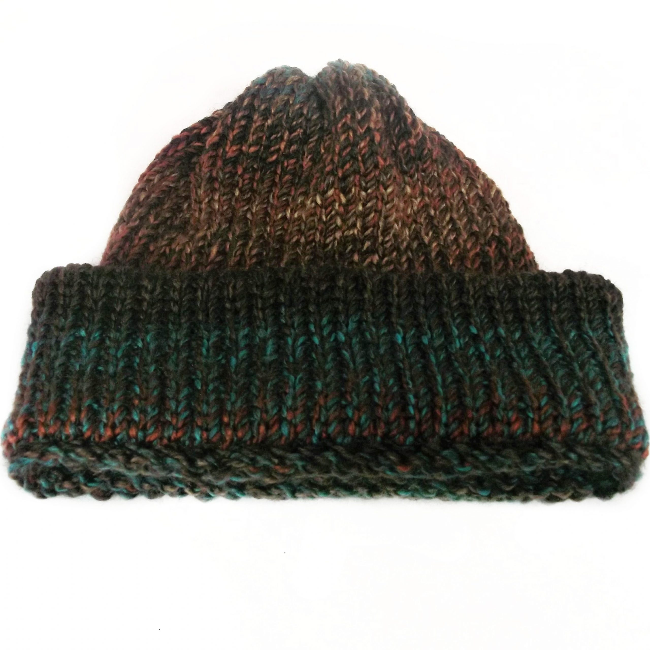 This brown and teal fisherman beanie hat is hand-spun on a mechanical loom with chunky wool giving a more snug fit.