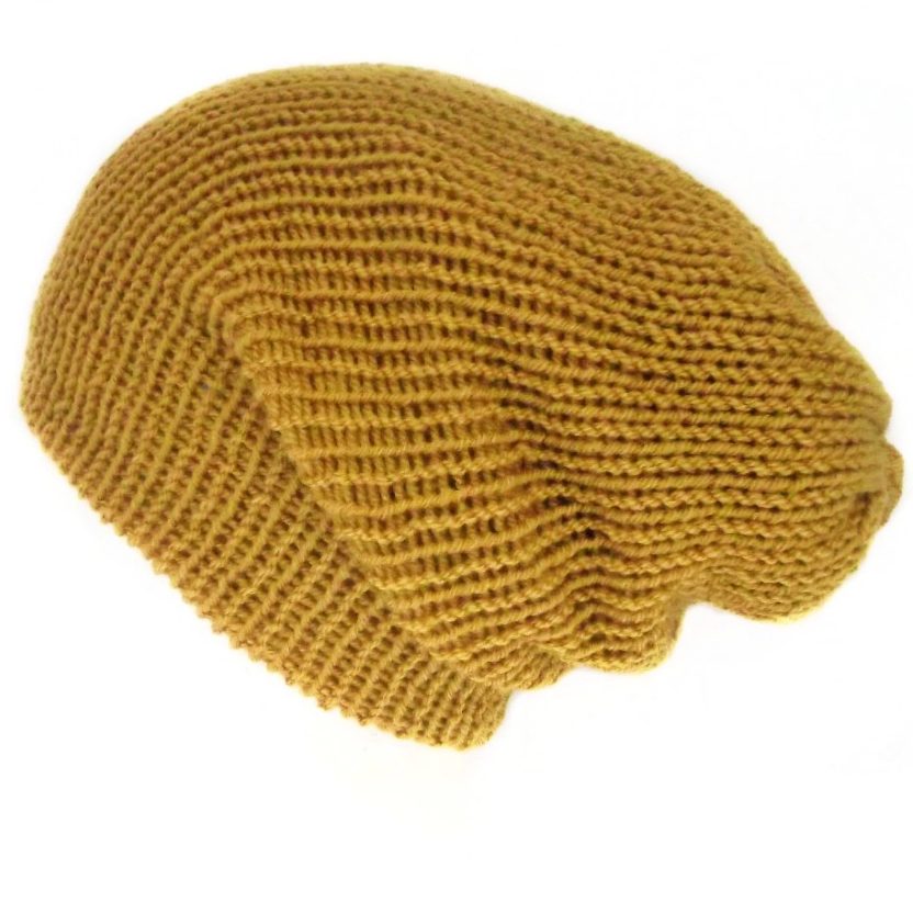 The slouch in this mustard yellow beanie hat is lightweight and stretchy so you can mold it to any shape you like which makes these hats perfect for dreadlocks, curly hair, long lie-ins and bad hair days, festivals, or just any time your outfit needs a slouchy beanie.
